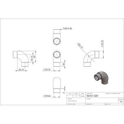 Nerezová spojka madla zábradlia pr.33,7 mm 56171-320 lomená 90°, AISI 304 brus