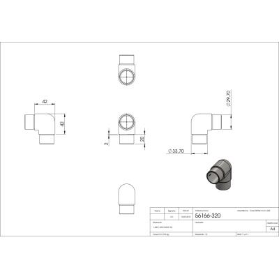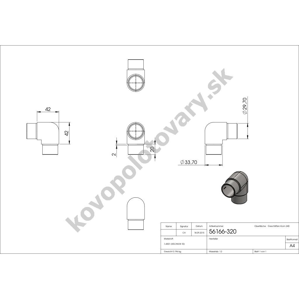Nerezová spojka madla zábradlia pr.33,7 mm 56166-320 zaoblená 90°, AISI 304 brus