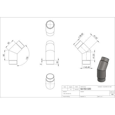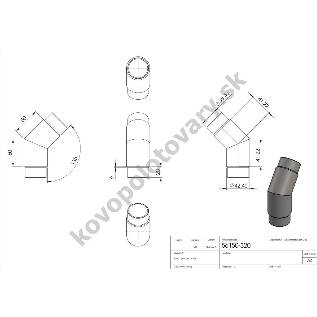 Nerezová spojka madla zábradlia pr.42,4 mm 56150-320 lomená 45°, AISI 304 brus