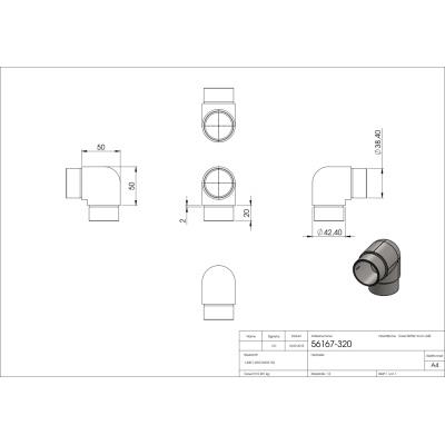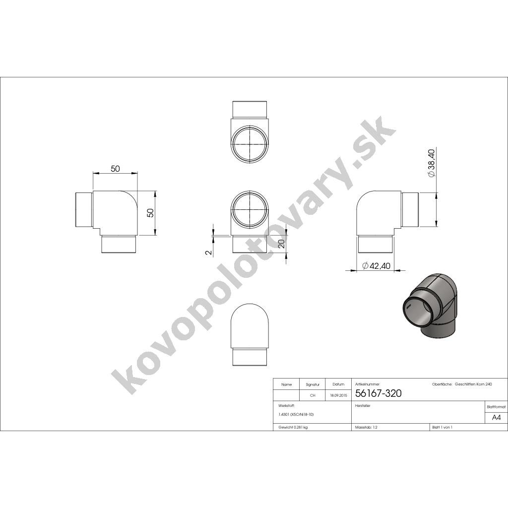Nerezová spojka madla zábradlia pr.42,4 mm 56167-320 zaoblená 90°, AISI 304 brus