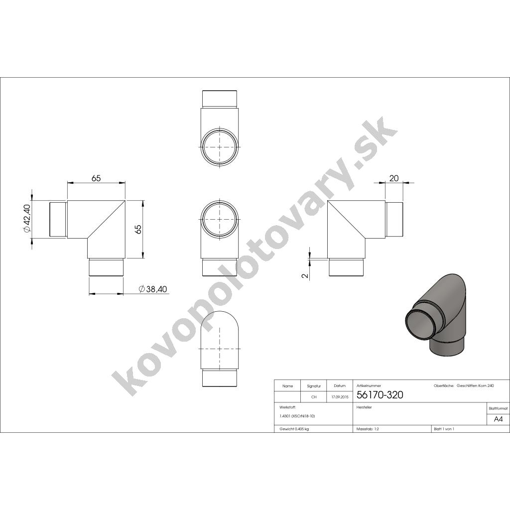 | Pre priemer / prierez | 42,4 mm |