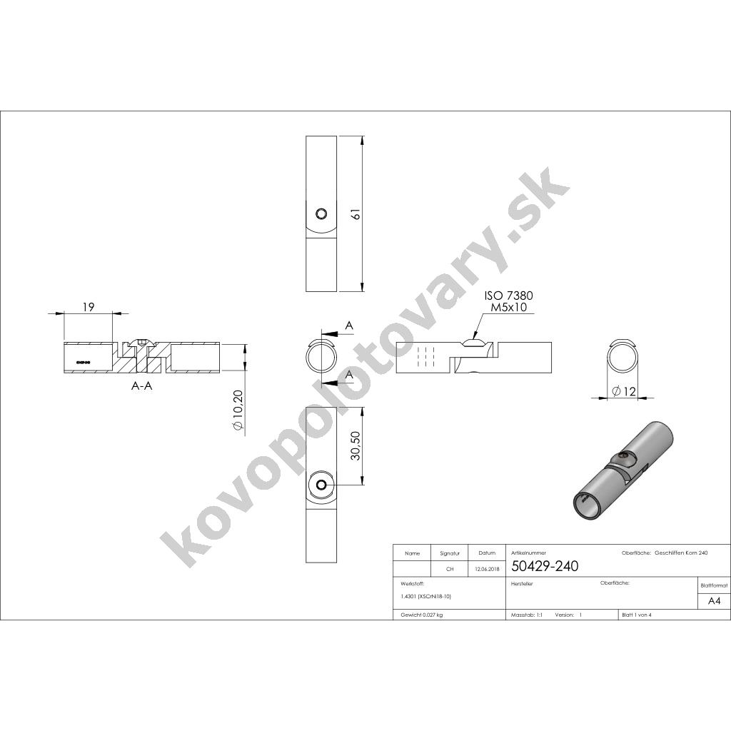Materiál: ocel nerezová; Povrchová úprava: mat / brus K240; Pro průměr / průřez: 10; Třída oceli: AISI 304 (A2); Vlastnosti: ohebné; přímé; rohové; spojovací;