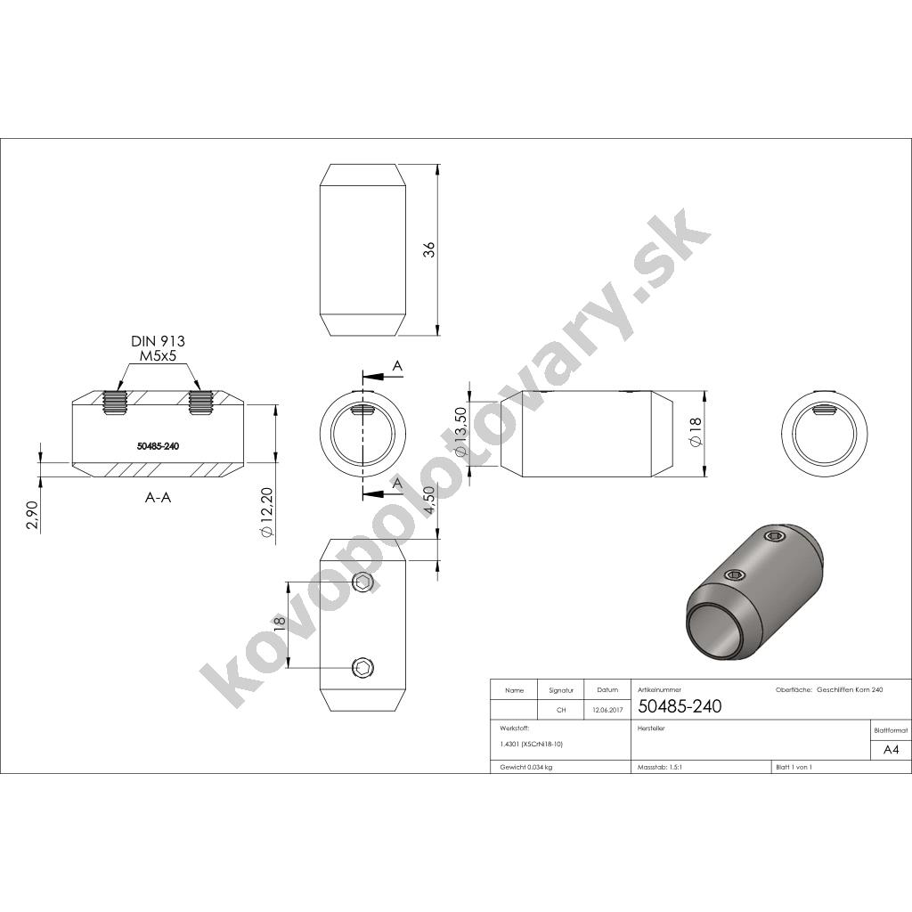 Materiál: ocel nerezová; Povrchová úprava: mat / brus K240; Pro průměr / průřez: 12; Třída oceli: AISI 304 (A2); Vlastnosti: pevné; rohové; spojovací;