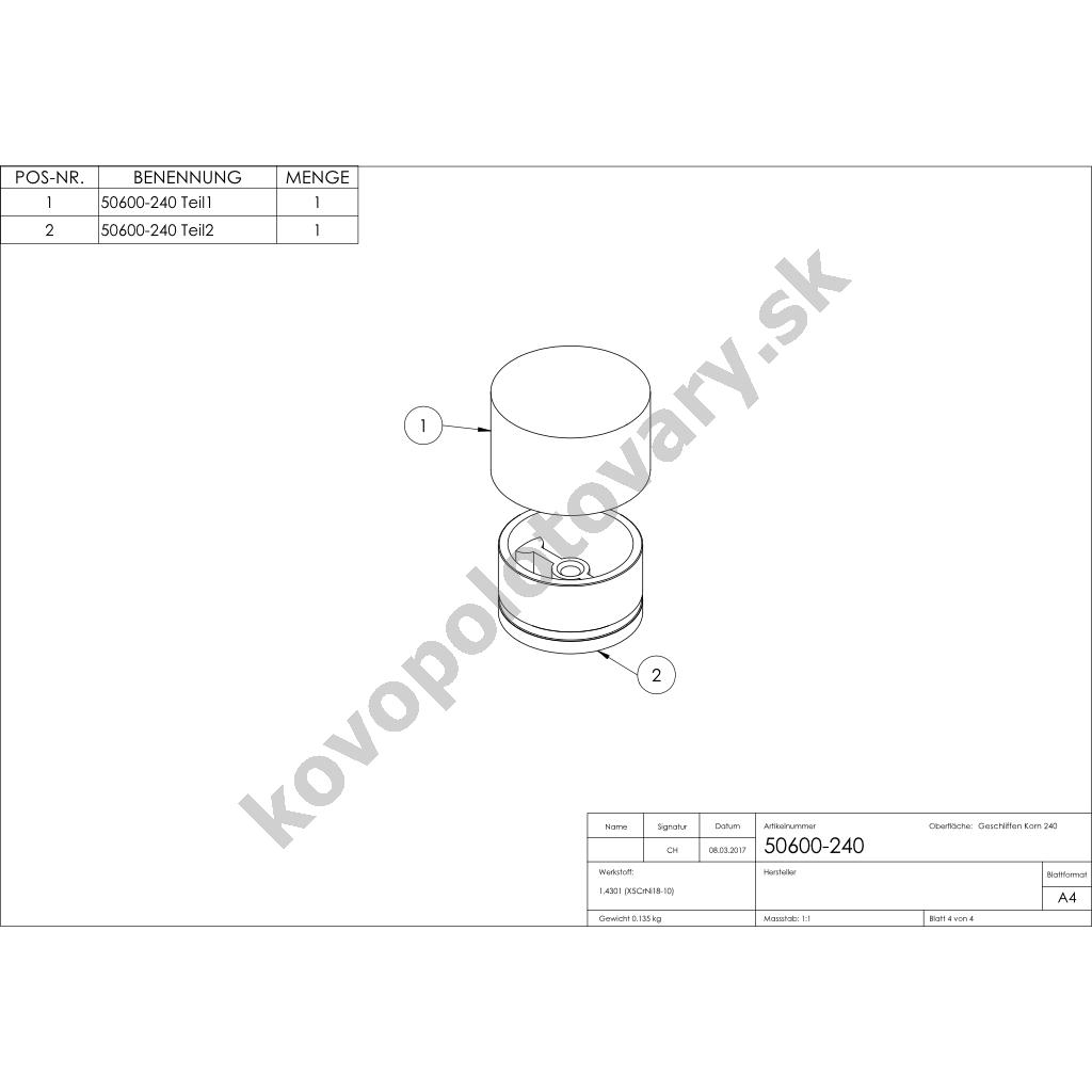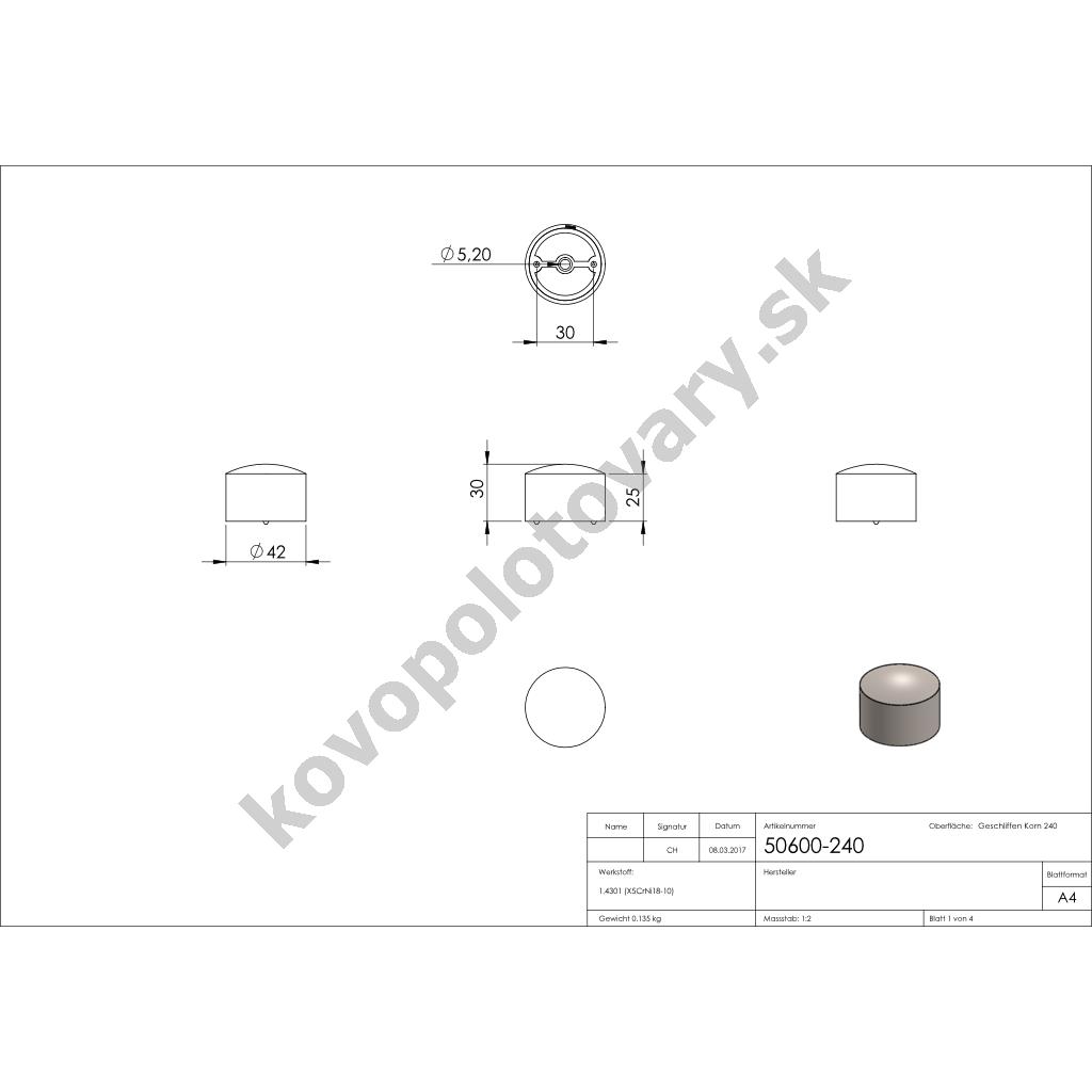 | Povrchová úprava | mat / brus K240 |