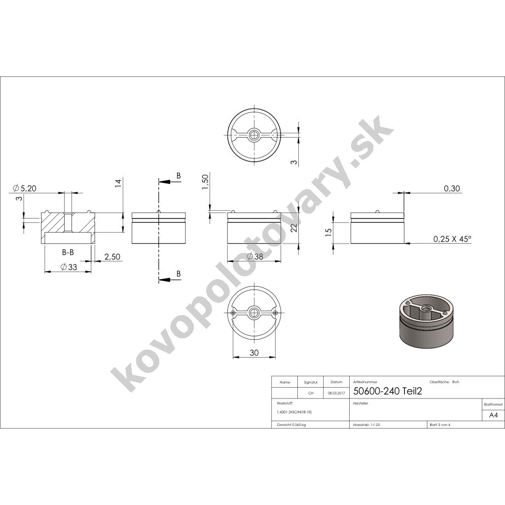 | Trieda ocele | AISI 304 (A2) |