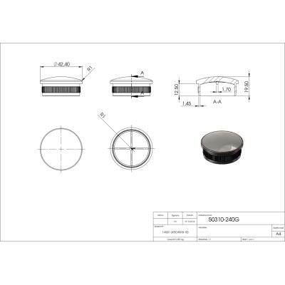 Nerezové ukončení madla zábradlí pr.42,4 mm 50310-240G mírně vypouklé, AISI 304 brus