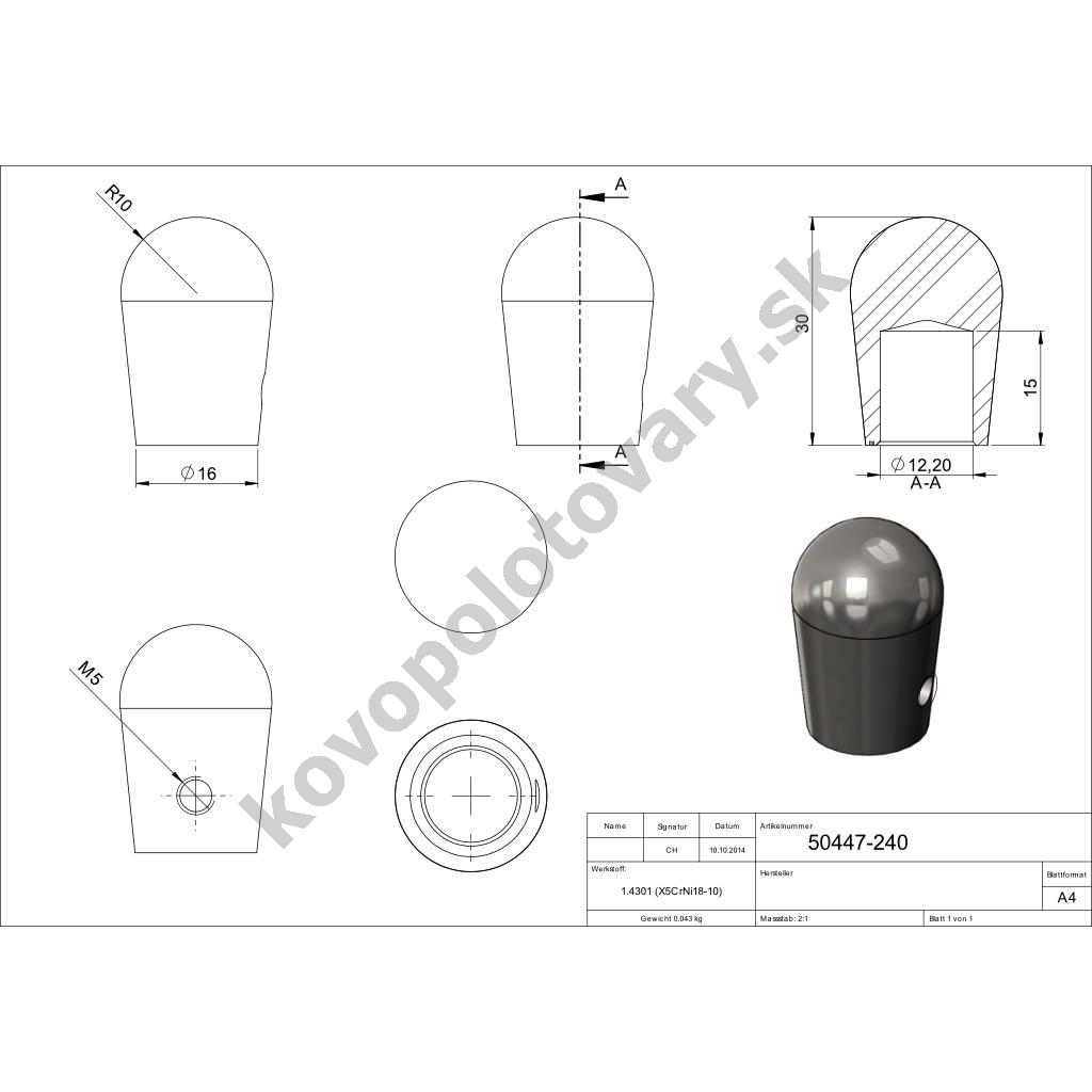 Nerezové ukončenie prútov - 50447-240, kvapkovité