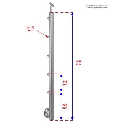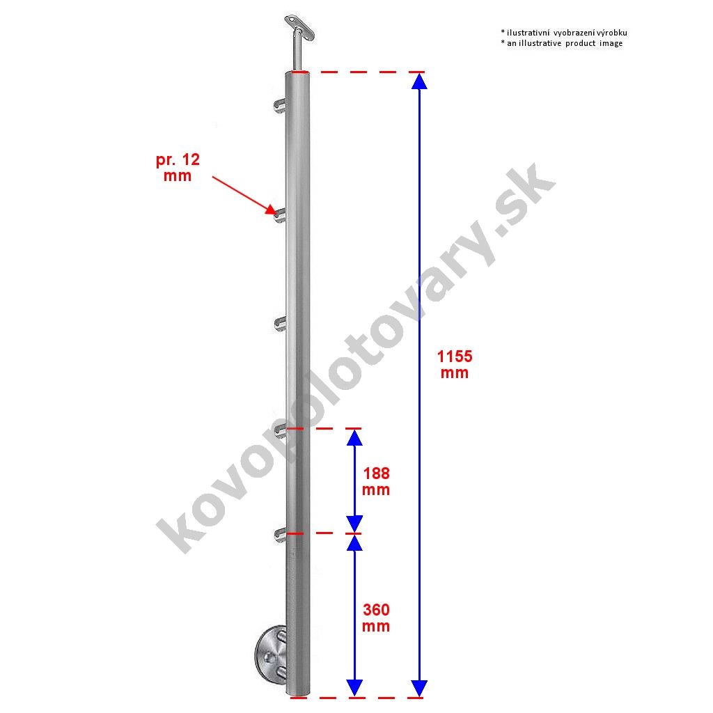 Délka balíku: 131; Kotvení: boční; Materiál: ocel nerezová; Použití: schodišťové; Povrchová úprava: mat / brus K240; Pro typ madla: pr. 42,4 mm; Průřez: kulatý; Systém: pruty; Třída oceli: AISI 304 (A2); Umístění: přímý; Výrobce: KovoPolotovary;