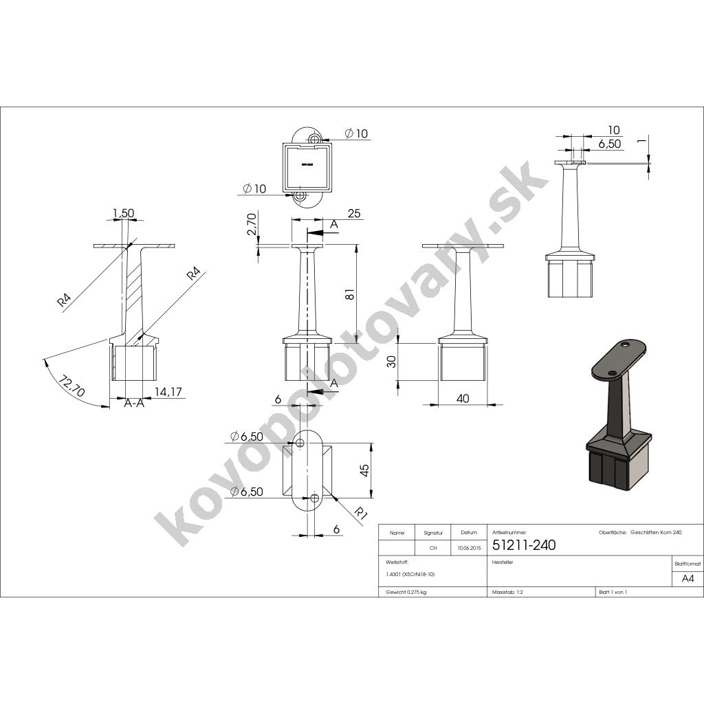 | Povrchová úprava | mat / brus K240 |