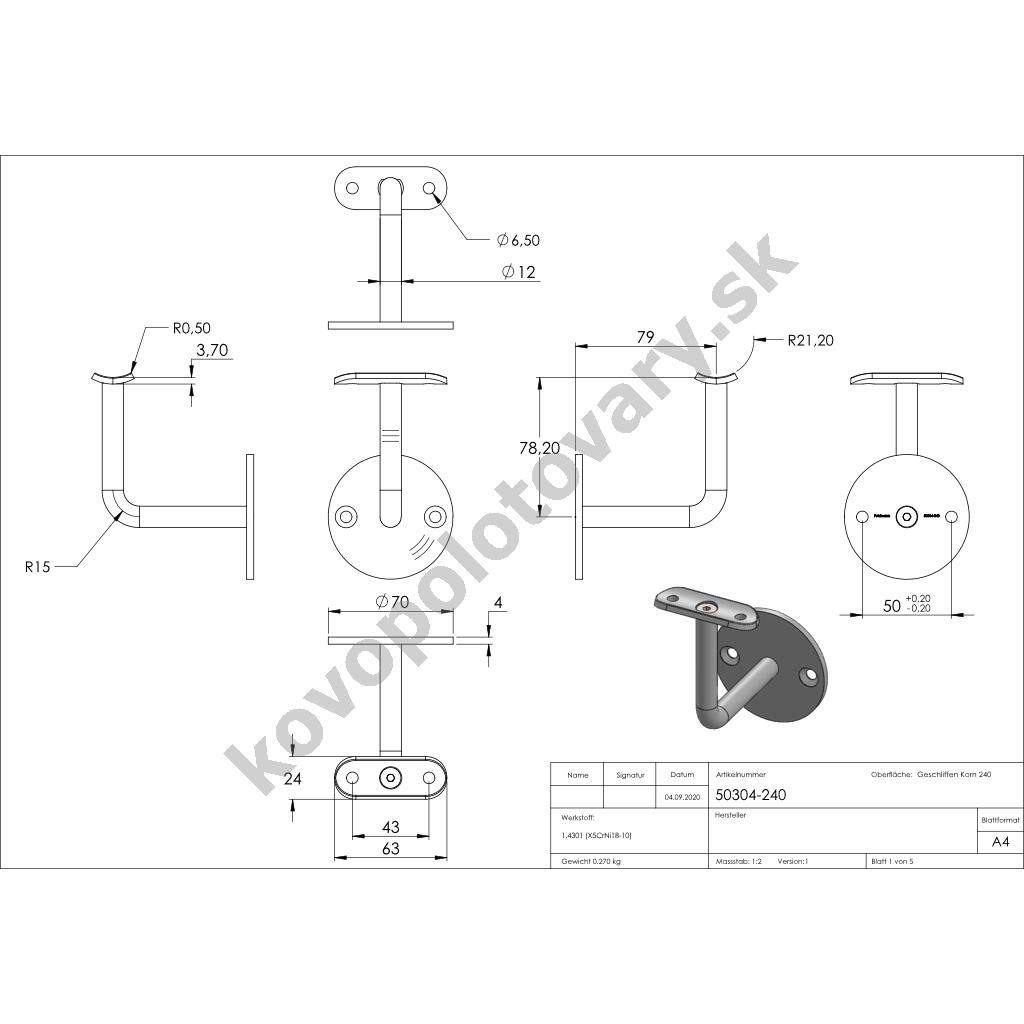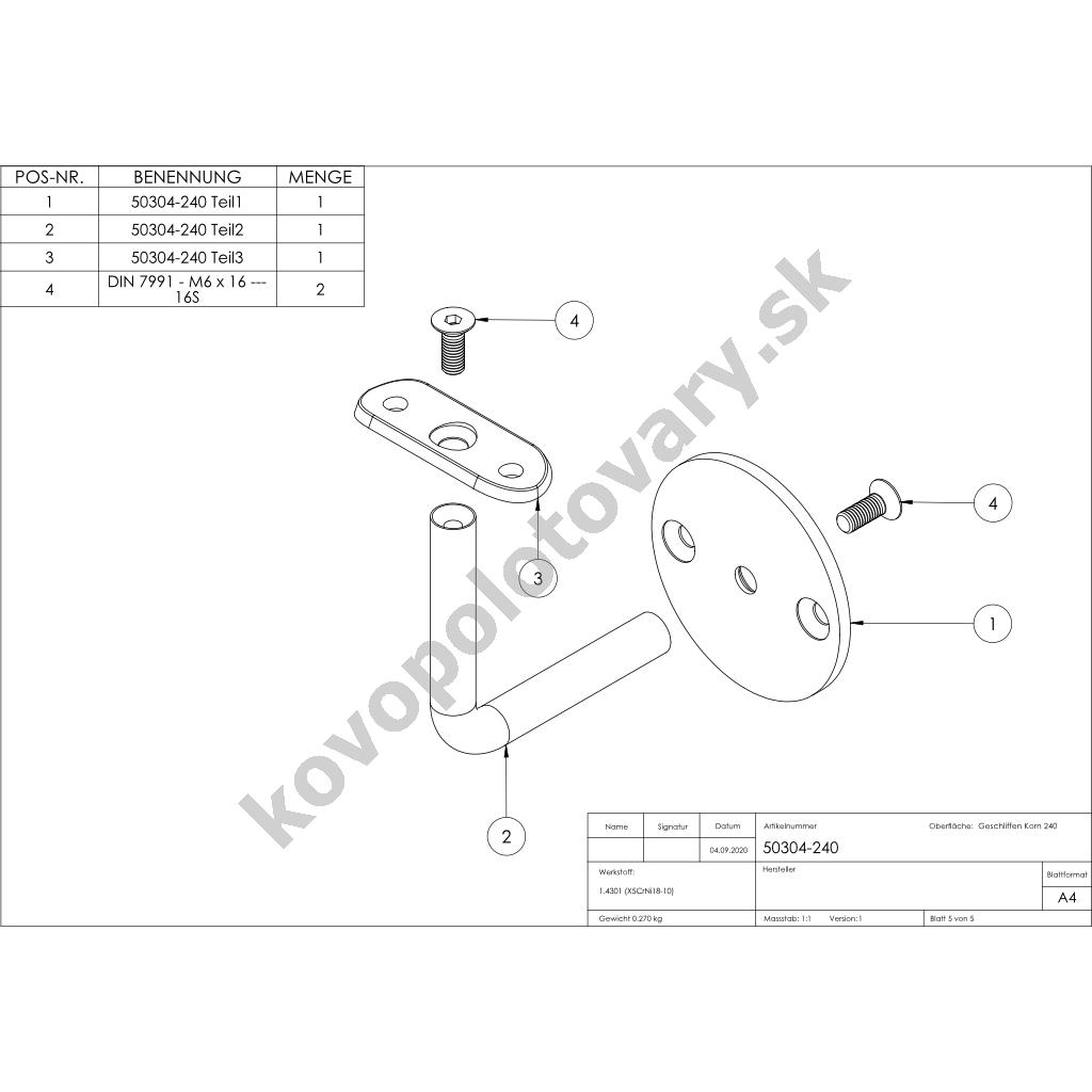 Nerezový držiak okrúhleho madla zábradlia pr.42,4mm 50304-240 brus, na stenu