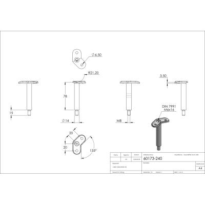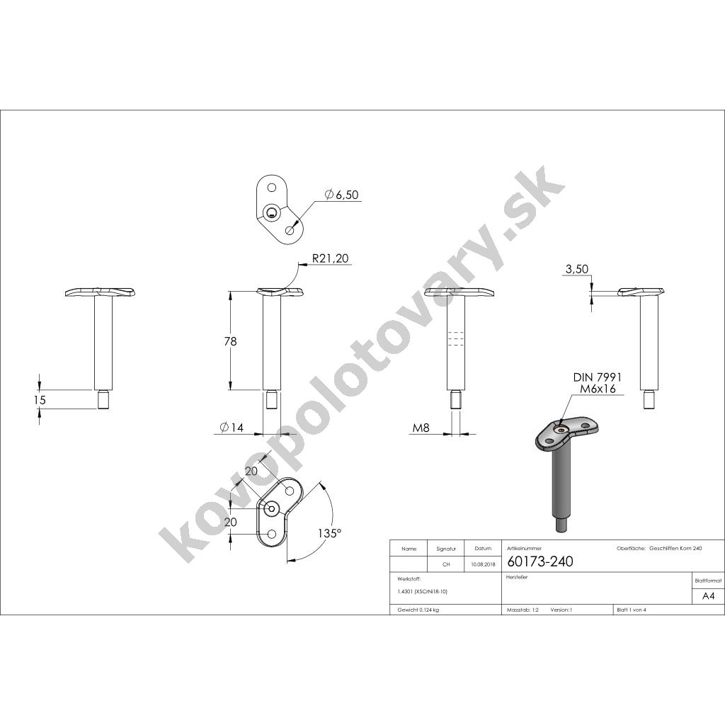 Nerezový držiak okrúhleho madla zábradlia pr.42,4mm 60173-240 brus, uhol 45°, závit M8