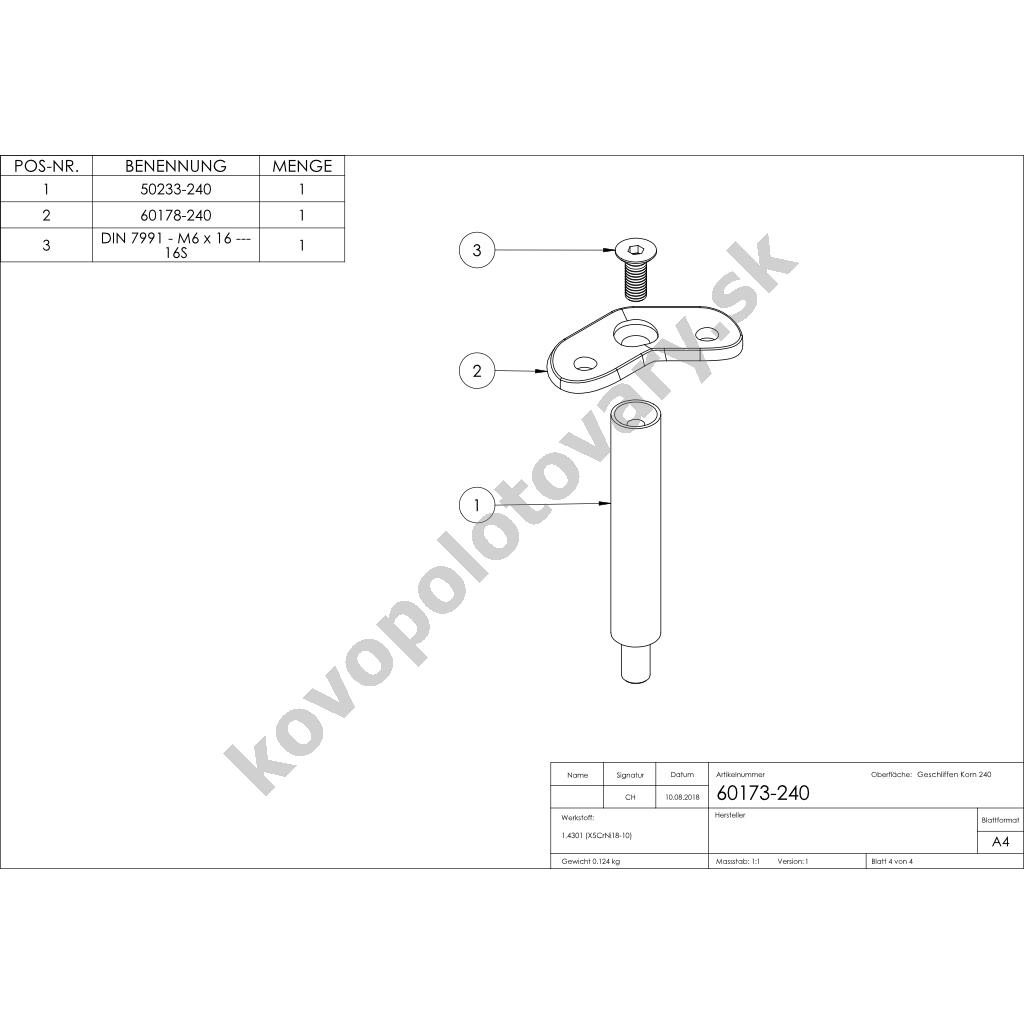 Nerezové ukončenie madla zábradlia pr.42,4 mm 50323-240M8G ploché, M8, AISI 304 brus