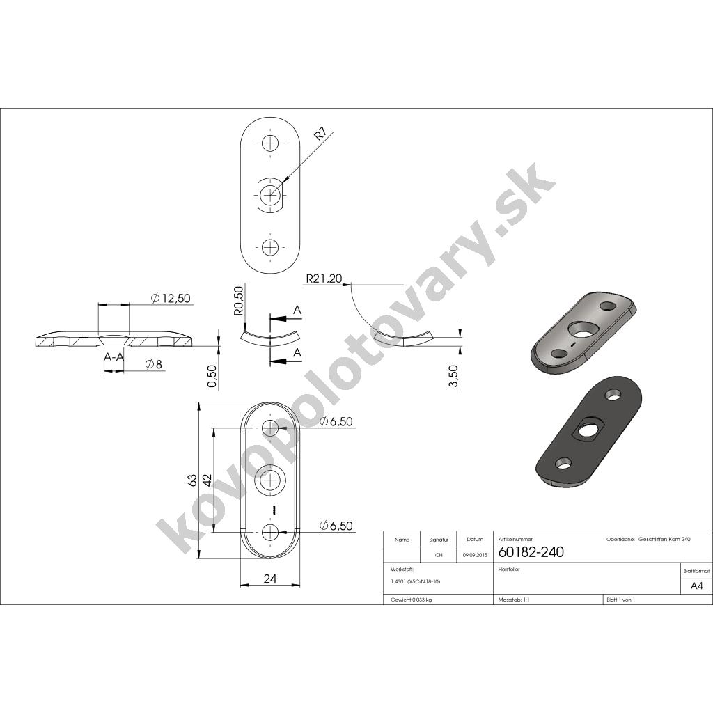 Materiál: ocel nerezová; Povrchová úprava: mat / brus K240; Pro typ madla: pr. 42,4 mm; Třída oceli: AISI 304 (A2); Uchycení: pro závit M6; Vlastnosti: flexi; rohové;