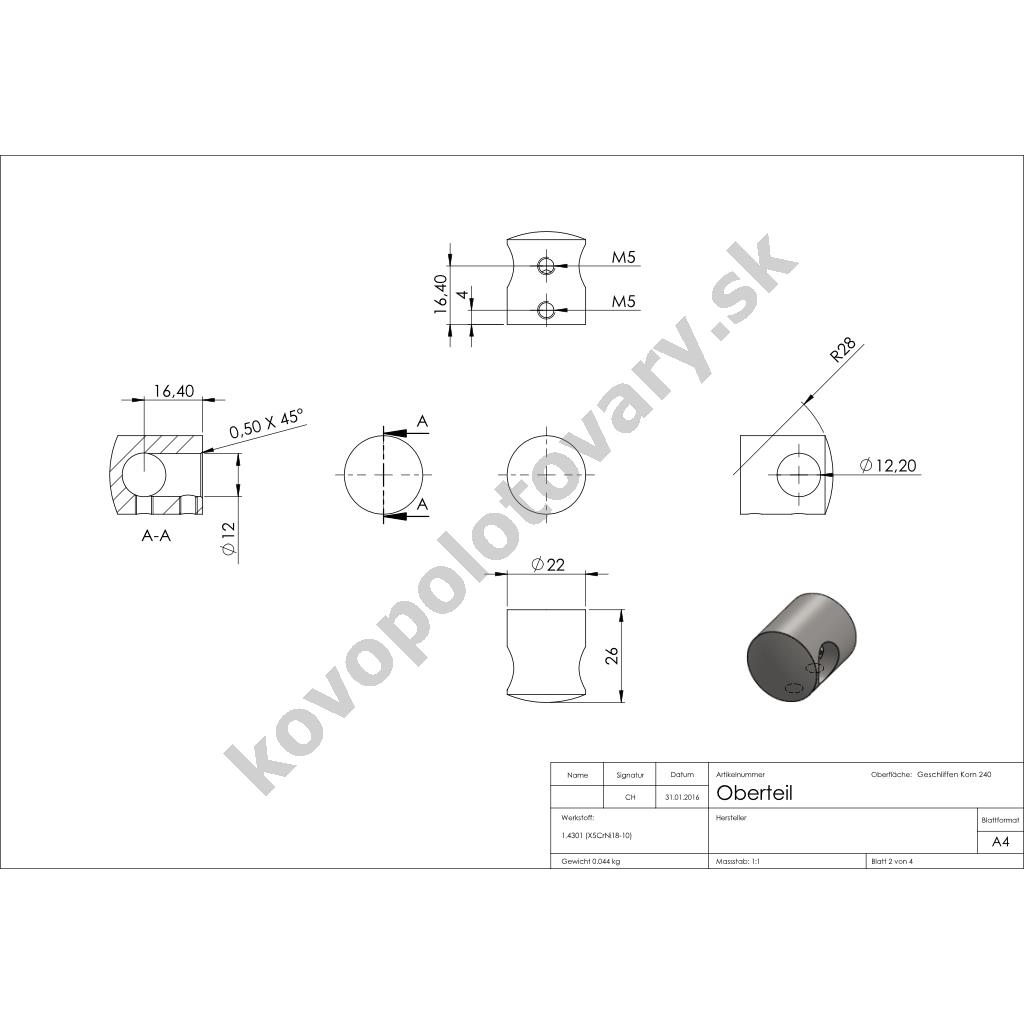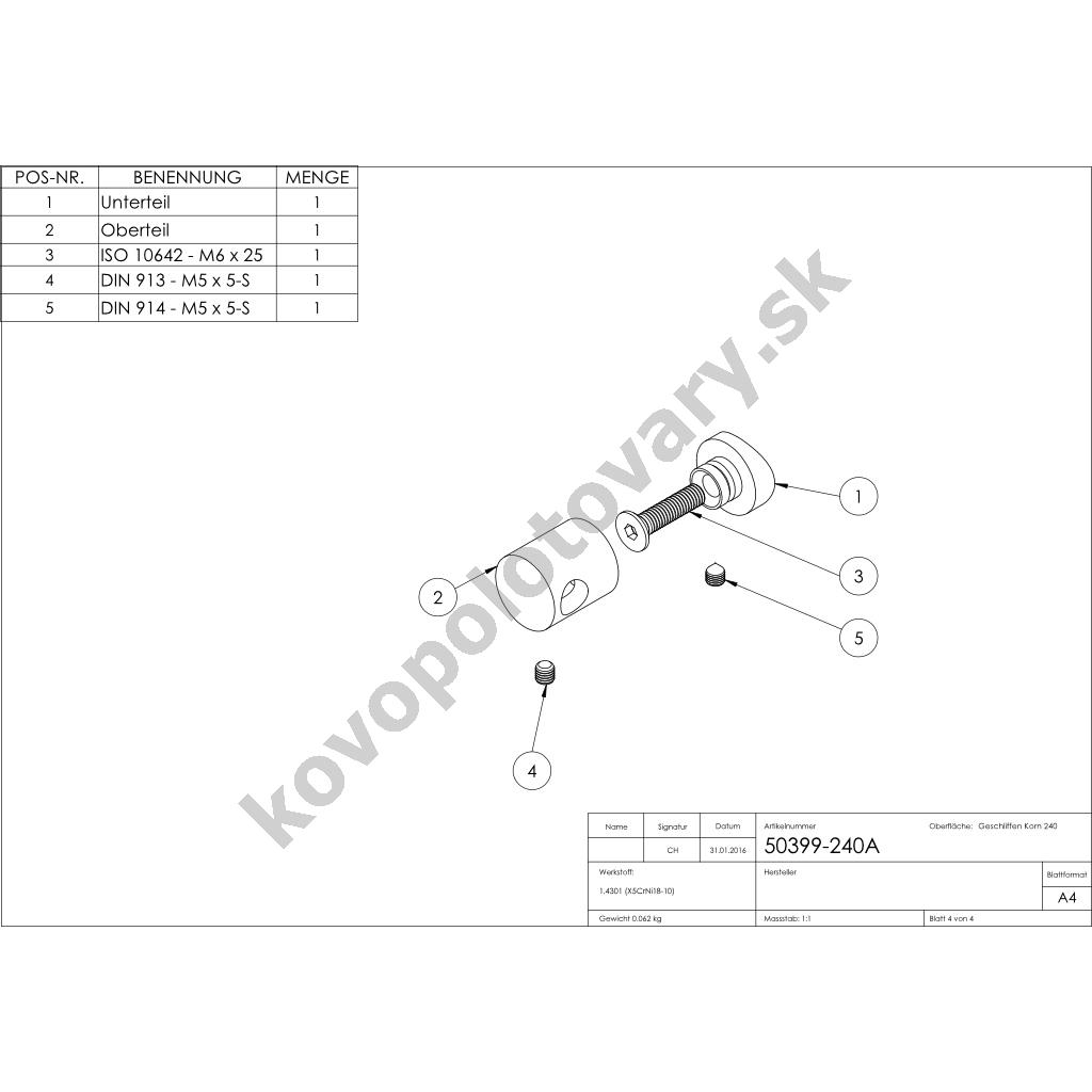 | Trieda ocele | AISI 304 (A2) |
