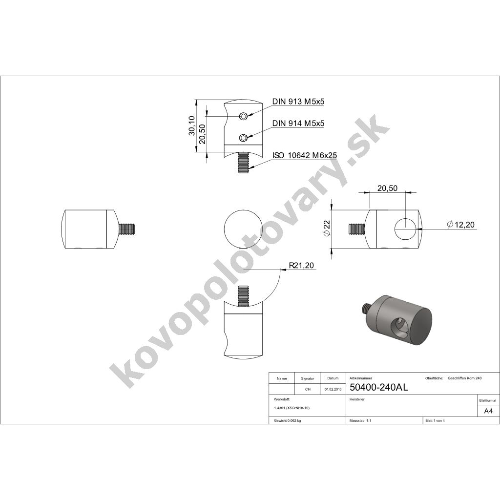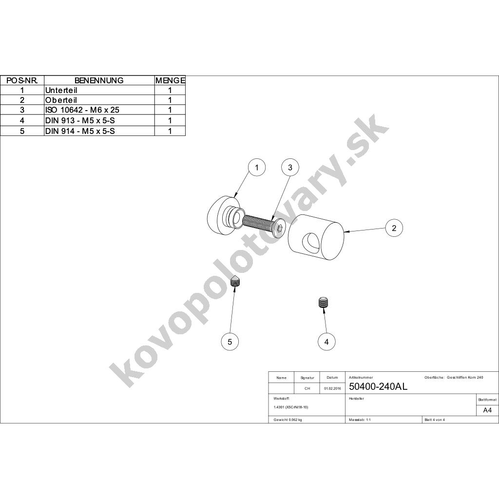 Nerezová spojka prútovej výplne zábradlia - prútov pr.12 mm 50400-240ASTO priebežná, na rúrku pr.42,4 mm, brus
