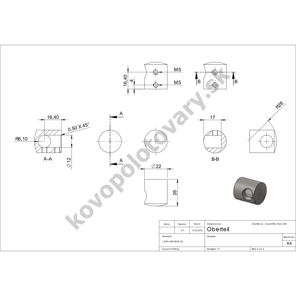 Materiál: ocel nerezová; Povrchová úprava: mat / brus K240; Pro průměr prutů: 12; Třída oceli: AISI 304 (A2); Uchycení: na trubku pr. 42,4 mm; Vlastnosti: průběžné;