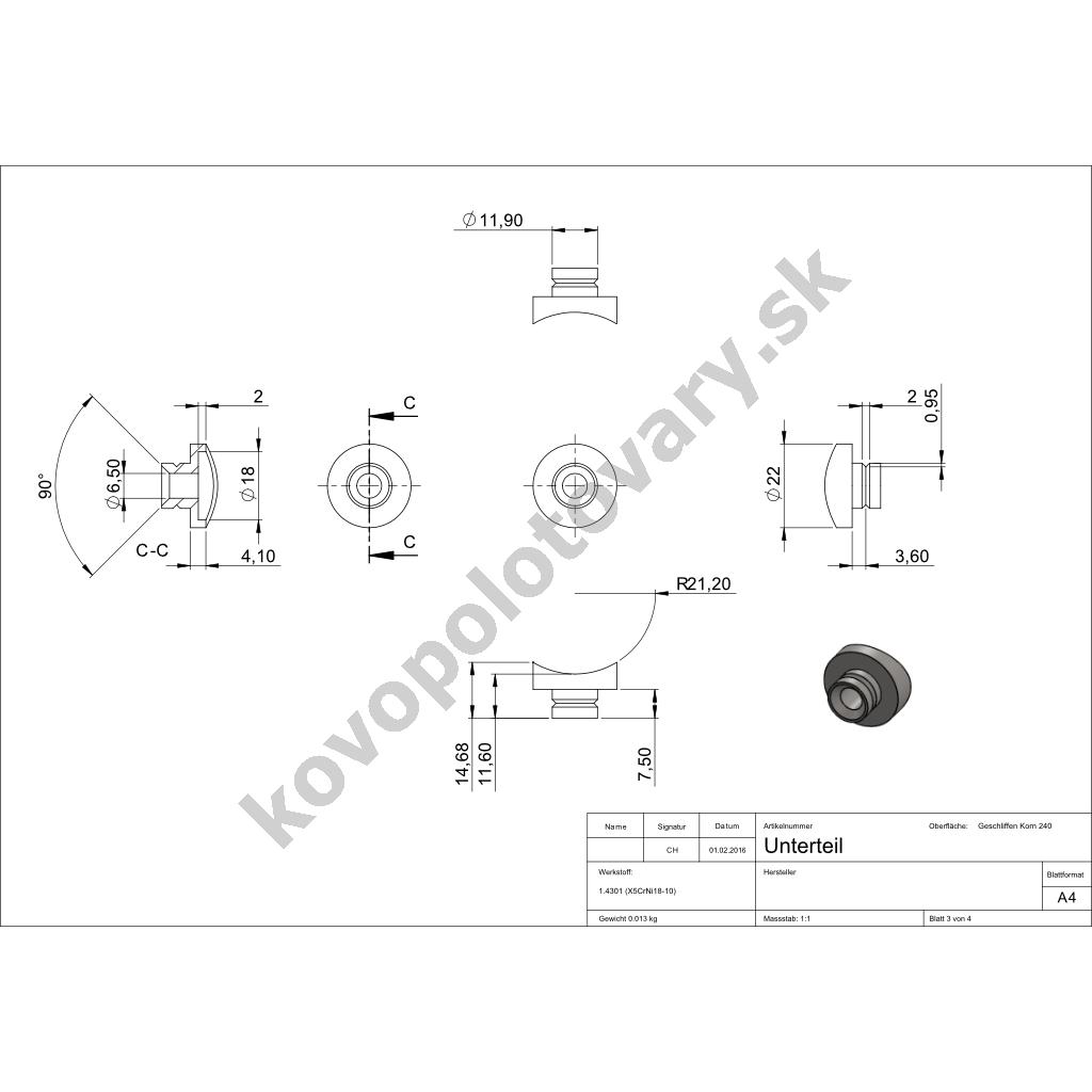 Materiál: ocel nerezová; Povrchová úprava: mat / brus K240; Pro průměr prutů: 12; Třída oceli: AISI 304 (A2); Uchycení: na trubku pr. 42,4 mm; Vlastnosti: rohové;