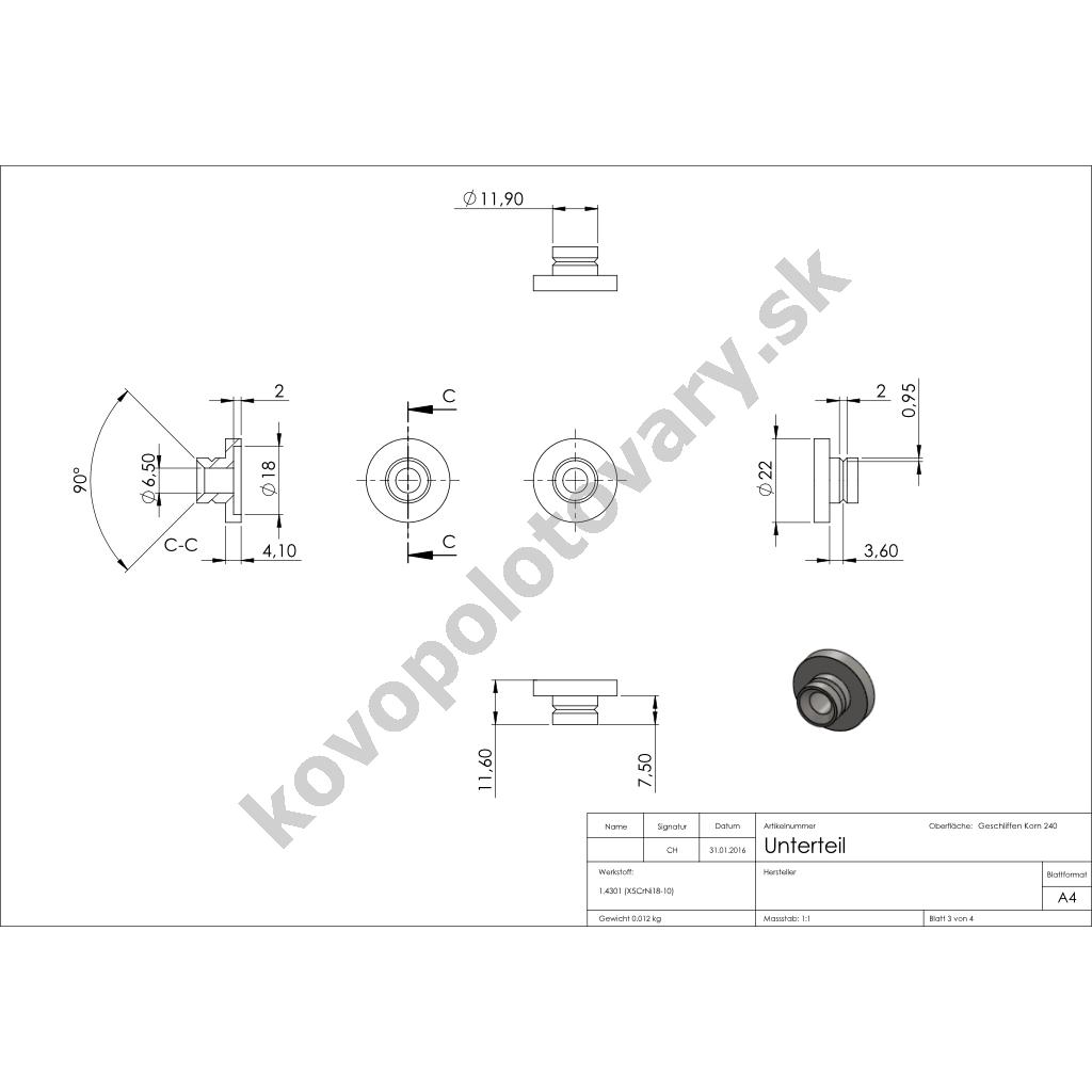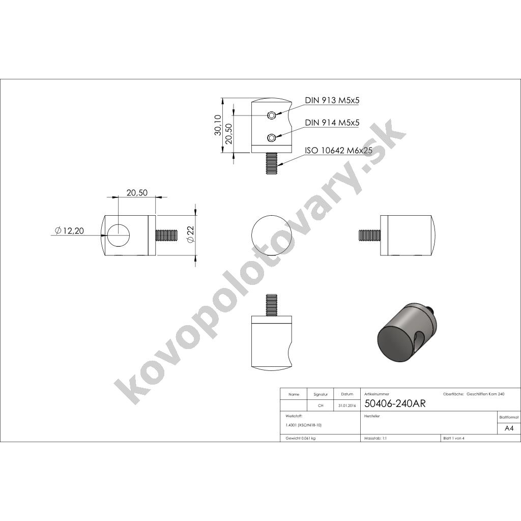 Nerezový držiak prútovej výplne 50406-240AR, koncový pravý Určené pre vnútorné i vonkajšie použitie napr. v...