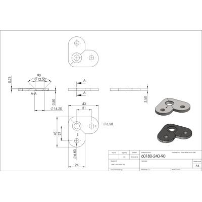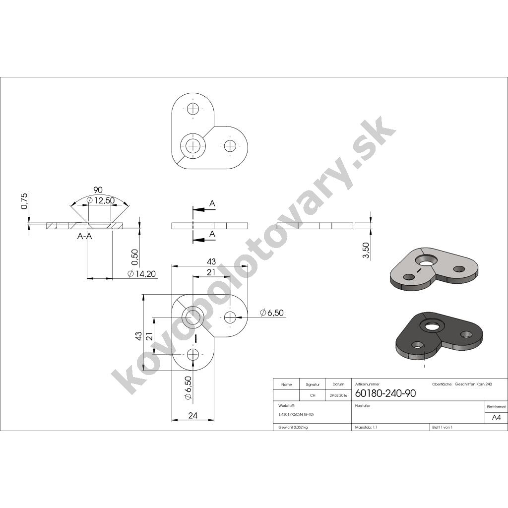 Materiál: ocel nerezová; Povrchová úprava: mat / brus K240; Pro typ madla: s plochou podstavou; Třída oceli: AISI 304 (A2); Uchycení: pro závit M6; Vlastnosti: flexi; rohové;