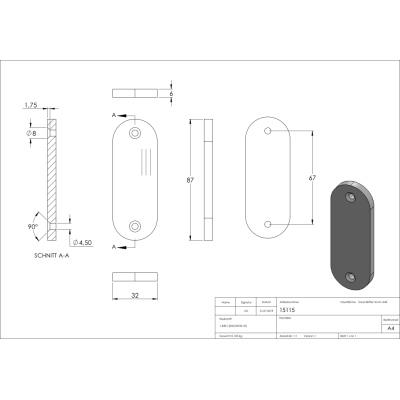 Nerezový štítek - krytka rozeta 15115, 87x32 x tl.6 mm