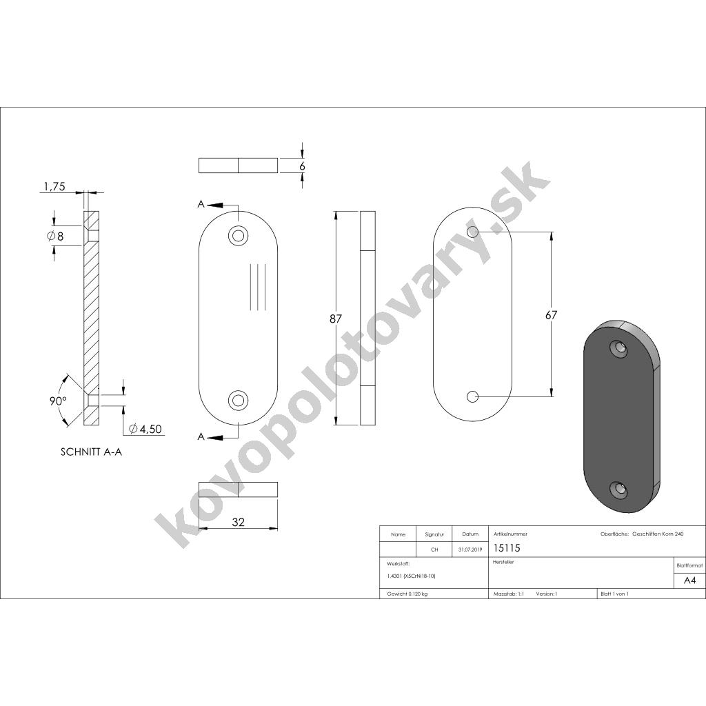 Nerezový štítok - krytka rozeta 15115, 87x32 x hr.6 mm