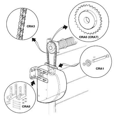 NICE CRA2 - Reťazová spojka Určené pre spôsob montáže s reťazom priemyselného pohonu NICE SUMO. Ukážku týchto...