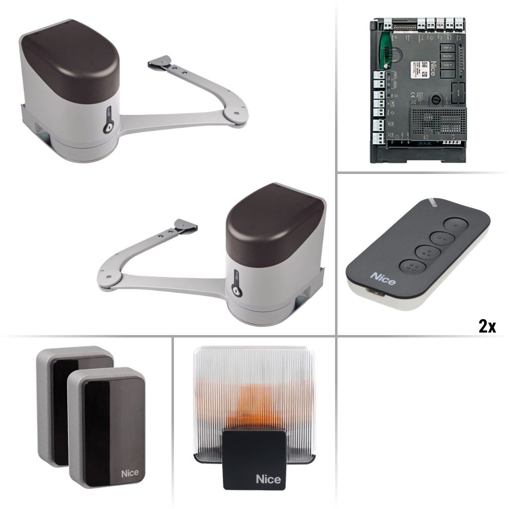 Tento pohon je vybavený mechanickými koncovými dorazmi pre polohu otvorené i zatvorené, napriek tomu pre polohu zatvorené odporúčame použitie zemného dorazu (k nájdeniu v záložke "Príslušenstvo" na karte tohto produktu). Riadiaca jednotka je vybavená zbernicou Nice BlueBUS, ktorá umožňuje zapojenie až 15 kompatibilných zariadení za použitia iba dvoch vodičov. Riadiaca jednotka pre oba pohony je vstavaná v pohone HK7024. Určené pre intenzívnu prevádzku. Kryt pohonu a ramená sú vyrobené z odolného eloxovaného hliníka. Ramená sú nastaviteľné. Sada je vhodná aj pre rozmernejšie bránové stĺpy. Vďaka polyesterovému náteru puzdier sú pohony HK7024 a HK7224 odolné proti nepriaznivým poveternostným vplyvom. Systém detekcie prekážok a monitorovanie odporu pri chode motora zaručuje bezpečnú prevádzku.