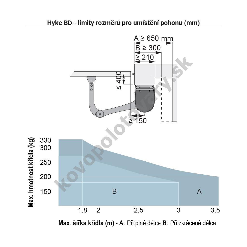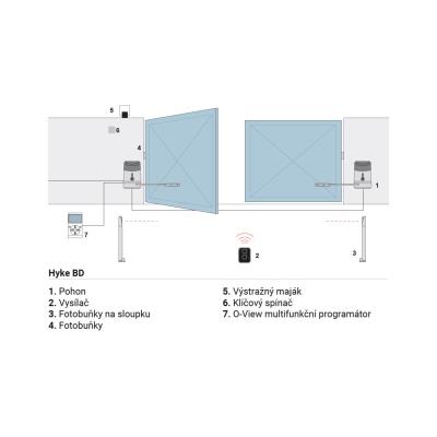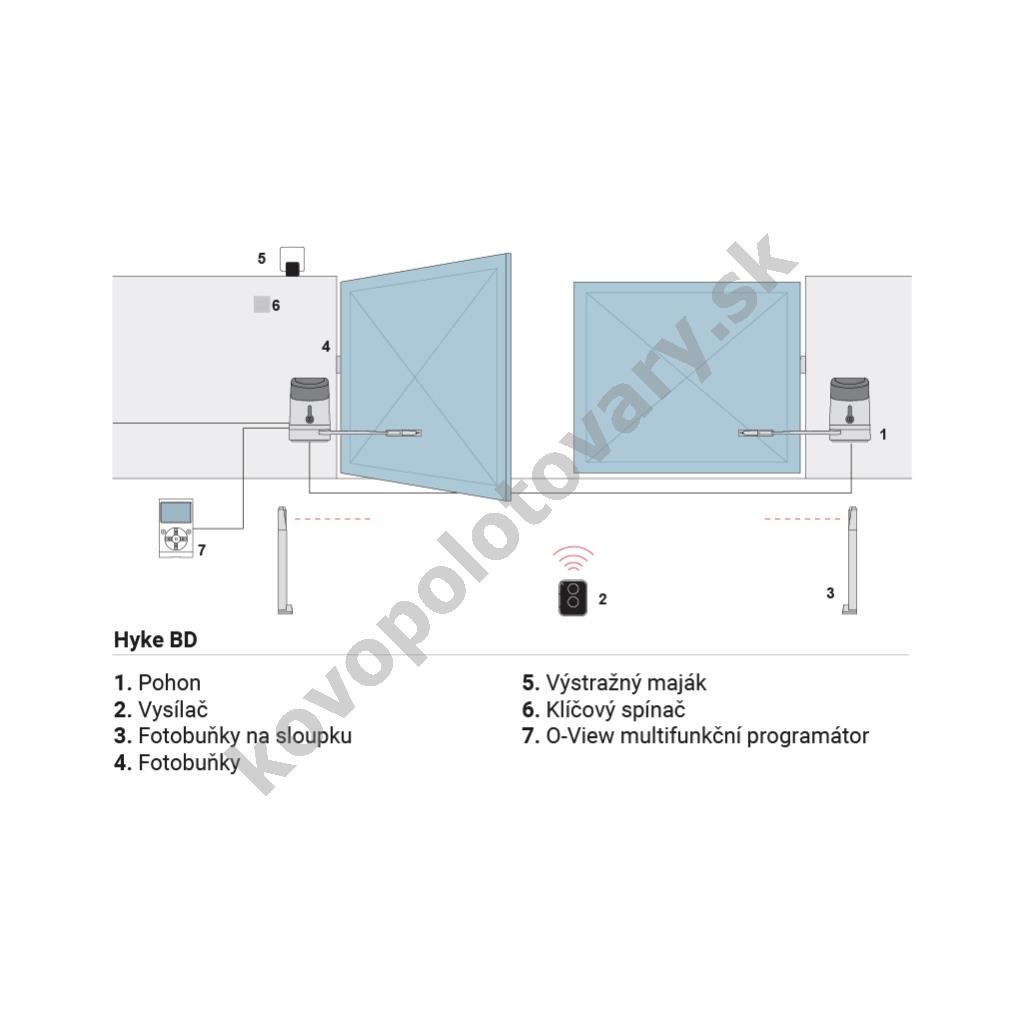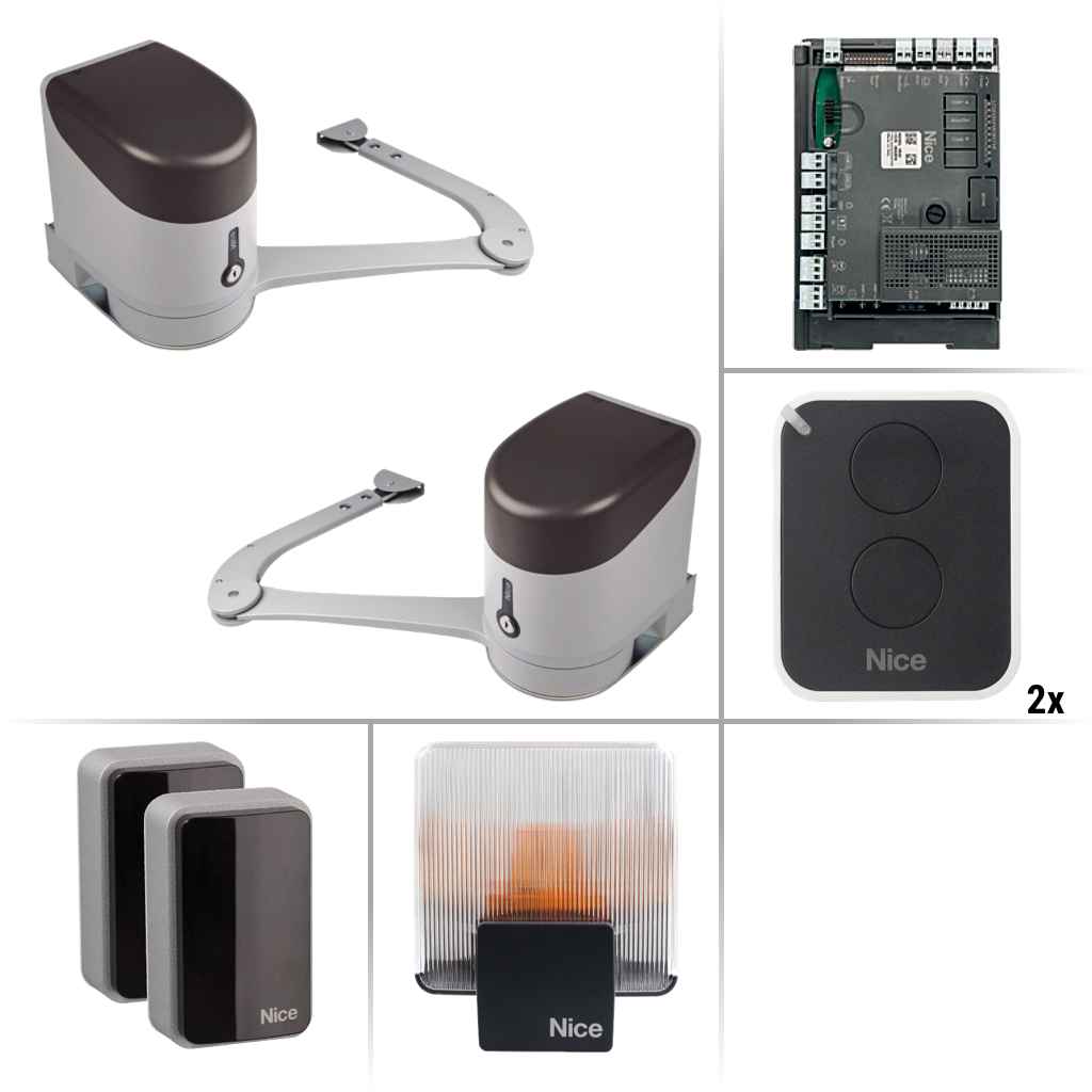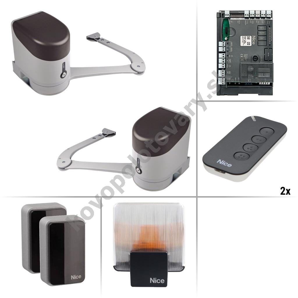 Nice Hyke KCE Zostava pákových pohonov a príslušenstva pre automatizáciu privátnej aj priemyselnej dvojkrídlovej brány s hmotnosťou do 660 kg šírkou prejazdu do 7 m. Motor Nice Hyke je vhodný pre automatizáciu krídlových brán s hmotnosťou jedného krídla do 330 kg a šírkou jedného krídla do 3,5 m. Bližšie špecifikácie, limity použitia a správne rozmery pre umiestnenie pohonov nájdete v návode a na doplňujúcich obrázkoch.