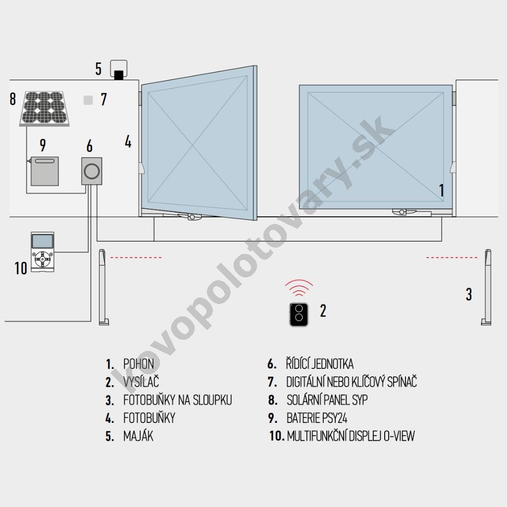 Perfektný vzhľad vďaka skrytej montáži do profilu krídla brány (min. priemer profilu 55 mm). Otvorenie krídla na 90 ° trvá cca 10 sekúnd a pohon je testovaný na 60 cyklov za hodinu.
