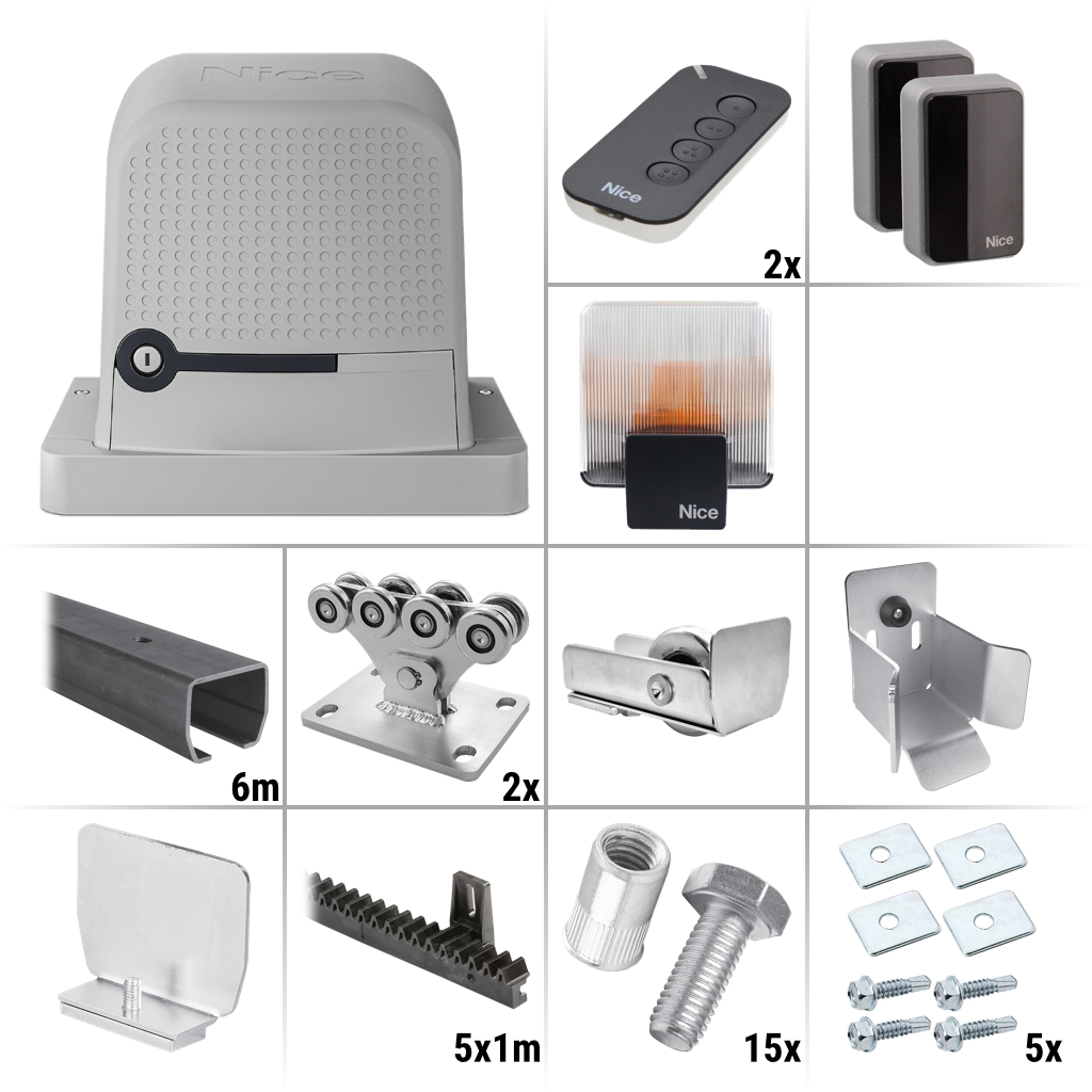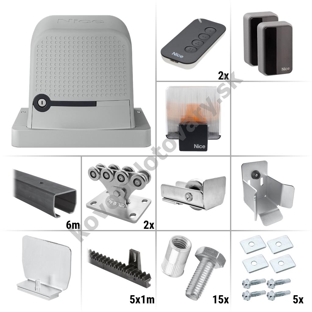 Nice Robus 400 BD KCE 7.0 Zostava pojazdových komponentov, pohonu a príslušenstva na výrobu pojazdu a automatizáciu posuvnej samonosnej (nesenej) brány do 4,2 m prejazdnej šírky a celkovej hmotnosti do 400 kg. Pri dokúpení ďalšieho C profilu je možné túto sadu použiť až do 4,5 m šírky prejazdu.