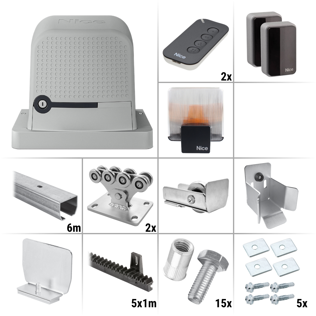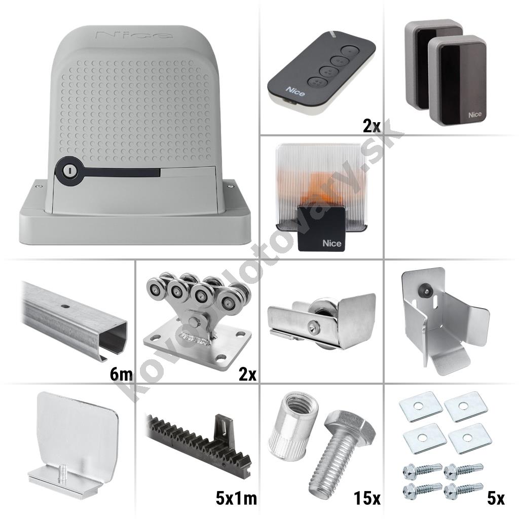 Nice Robus 400 BD KCE 7.0Z Zostava pojazdových komponentov, pohonu a príslušenstva na výrobu pojazdu a automatizáciu posuvnej samonosnej (nesenej) brány do 4,2 m prejazdnej šírky a celkovej hmotnosti do 400 kg. Pri dokúpení ďalšieho C profilu je možné túto sadu použiť až do 4,5 m šírky prejazdu.