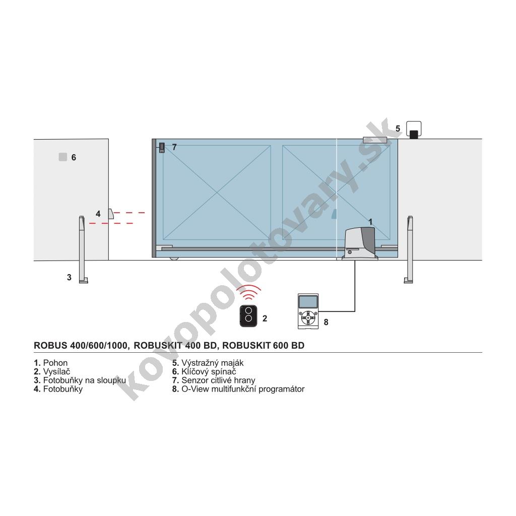 Nice Robus 400 KCE Zostava pohonu a príslušenstva pre automatizáciu privátnej posuvnej brány. Motor Nice Robus-400 je vhodný pre automatizáciu posuvných a samonosných brán s hmotnosťou do 400 kg a šírkou prejazdu do 8 m.