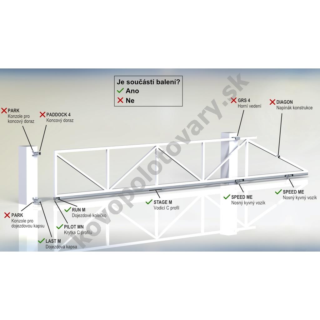 - Dôležité: súčasťou balenia nie je horné vedenie, vodiaca rolka. Dôvodom je viacero možností konštrukčného prevedenia. Vhodné horné vedenia nájdete v súvisiacich položkách.