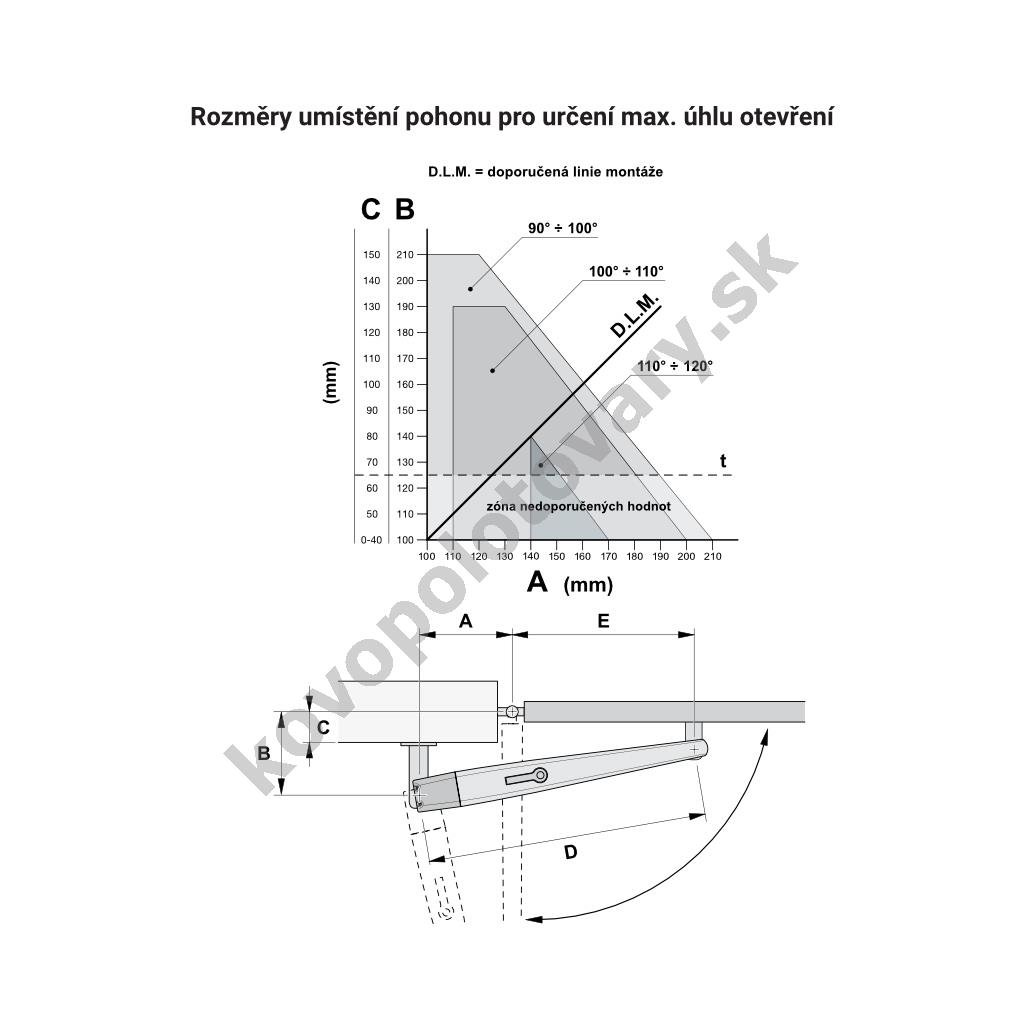 - Odporúčaná šírka krídla: max. 3 m (pri hmotnosti krídla 300 kg)