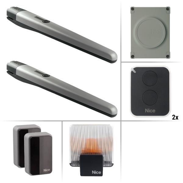 Set obsahuje obojsmerný prijímač, umožňujúci zobrazenie stavu otvorenia brány na obojsmernom diaľkovom ovládači (obojsmerný ovládač nie je súčasťou balenia). Tento prijímač je spätne kompatibilný aj s jednosmernými ovládačmi Nice. Bližšie informácie nájdete v návodoch jednotlivých produktov.