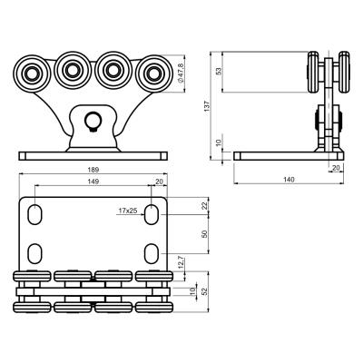 Nosný vozík posuvné brány SPEED-SK, malý 8kolesový, pre vodiaci profil STAGE-SB / SZ, pre brány do svahu