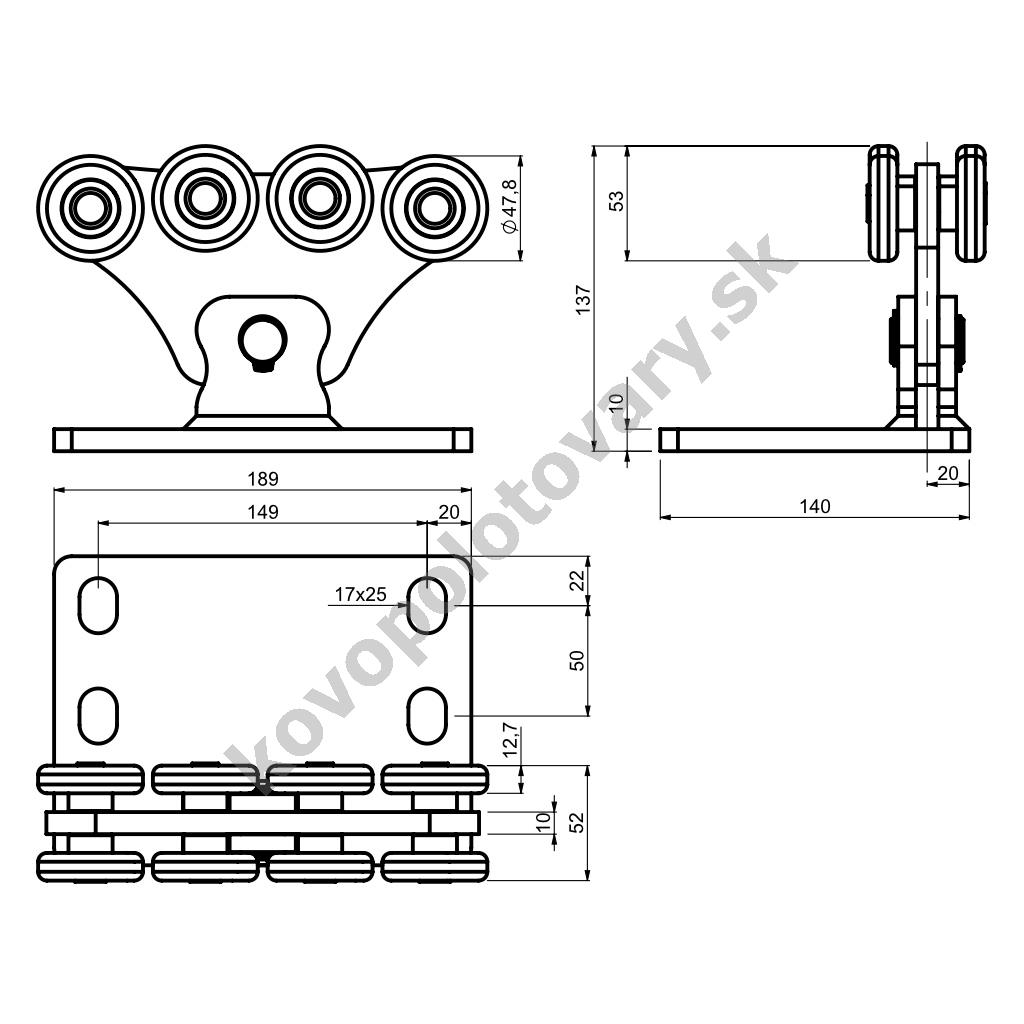 Nosný vozík posuvné brány SPEED-SK, malý 8kolový, pro vodící profil STAGE-SB/SZ, pro brány do svahu
