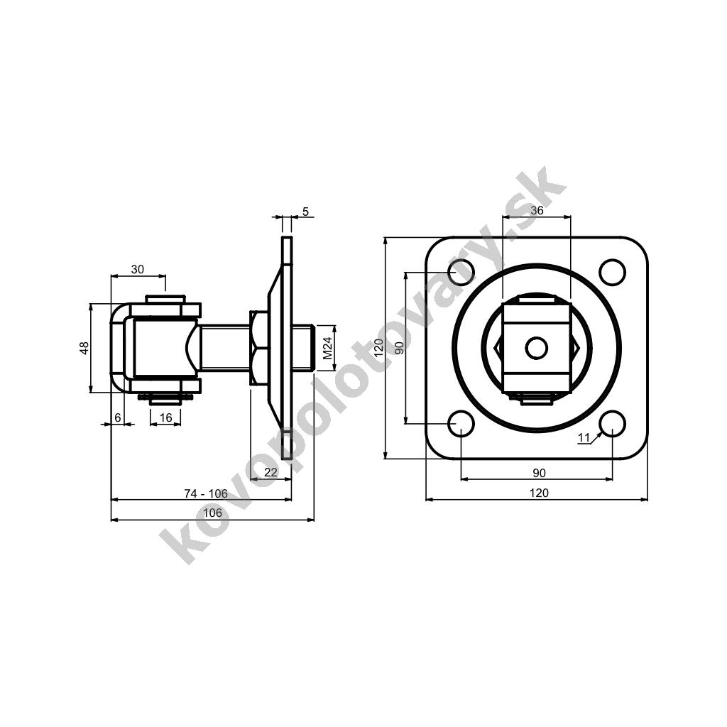Materiál: ocel; Nosnost pantu (kg): 110; Použití: k přišroubování; na betonové sloupky; Typ závitu: M24; Výrobce: CAIS;