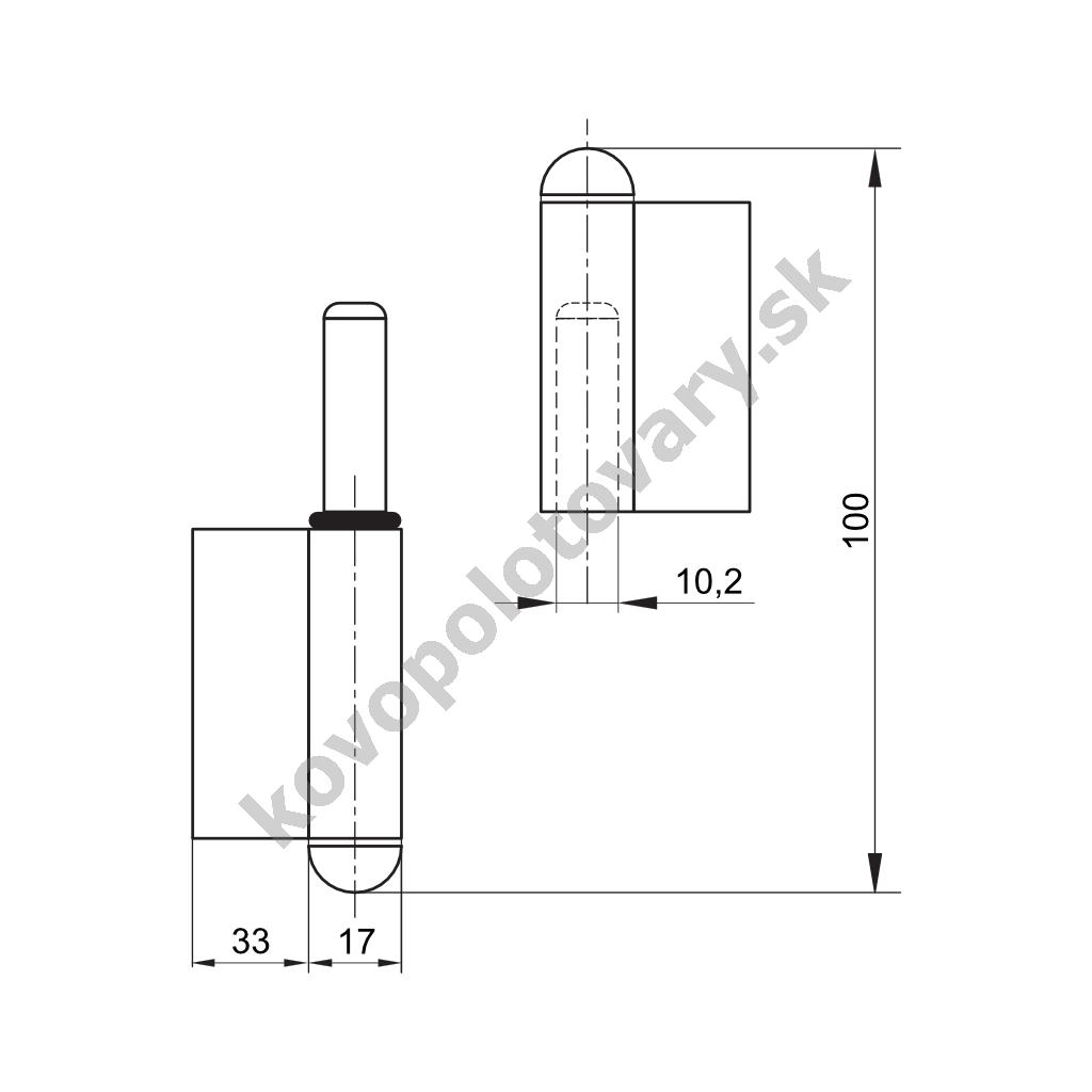Pánt na dvere a vráta - navarovací ľavý pr.17 mm x 100 mm FM-495100SX, bez úpravy