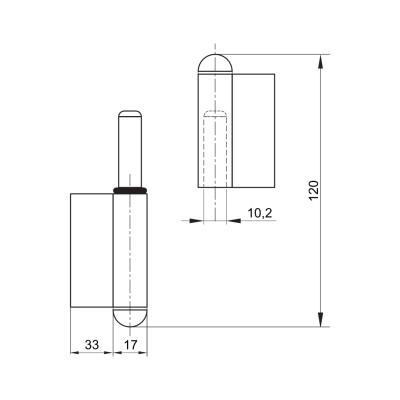 Pant na dveře a vrata - navařovací levý pr.17 mm x 120 mm FM-495120SX, bez úpravy