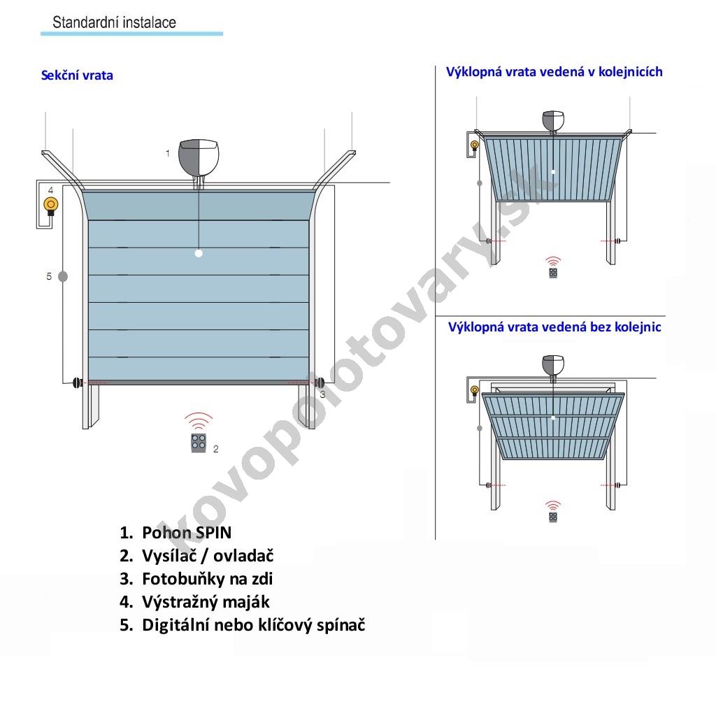 Pohon je dodávaný vrátane 3 m dlhé remeňové nehlučné dráhy (dodávané v jednom kuse). Súčasťou pohonu je zabudovaná riadiaca jednotka s rádiovým prijímačom.