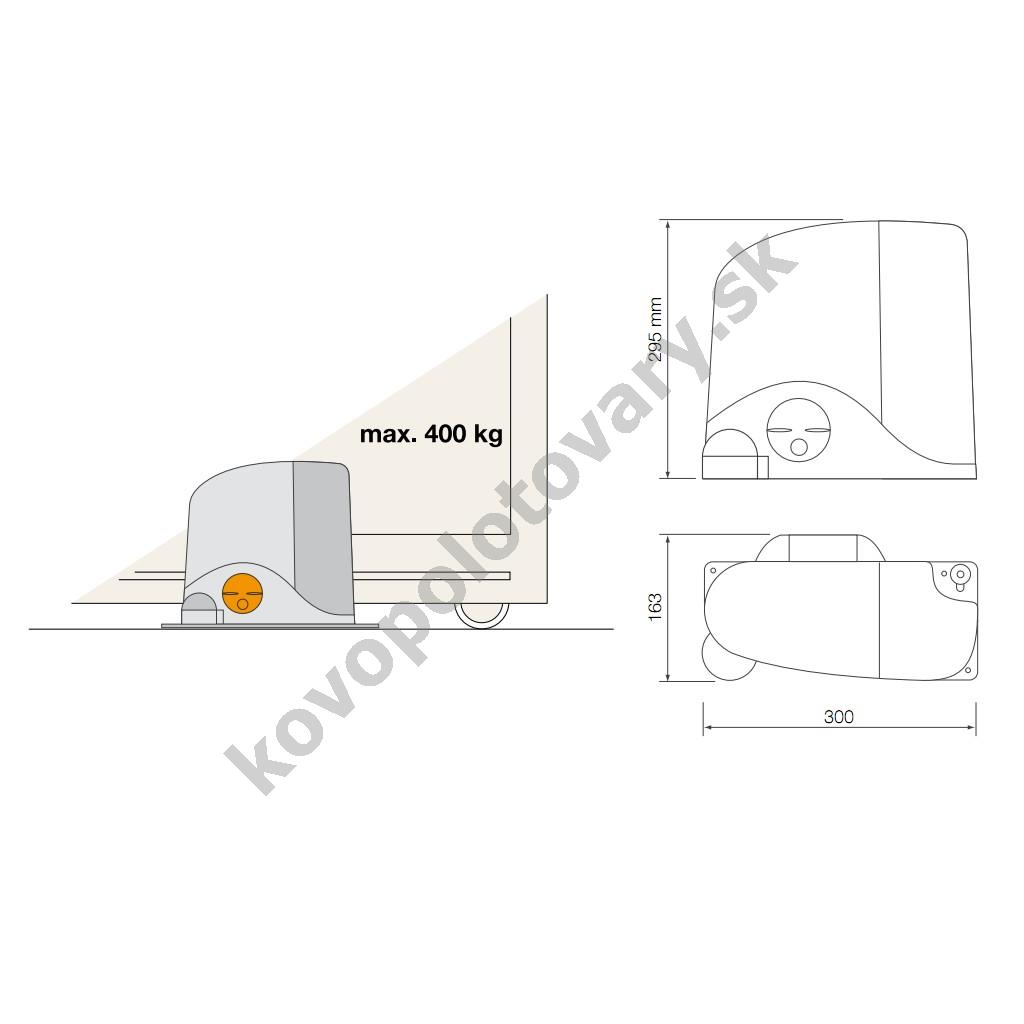 Tento pohon je vhodný pre automatizáciu privátnych posuvných a samonosných brán s hmotnosťou do 400 kg a maximálne šírky prejazdu 5 m. Motor brány sa vyznačuje dlhou životnosťou a nenáročným zapojením.