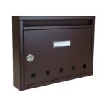 Barva schránky: Hnědá RAL 8017; Hloubka schránky: 60; Jmenovka: Ano; Kamera: Ne; Komunikátor: Ne; Materiál: ocel; Montáž: na stěnu; Povrchová úprava: barveno; pozinkováno; Šířka schránky: 325; Venkovní použití: Ne; Vhoz zásilek: vpředu; Výběr zásilek: vpředu; Výrobce: DOLS; Výška schránky: 240; Zvonkové tlačítko: Ne;