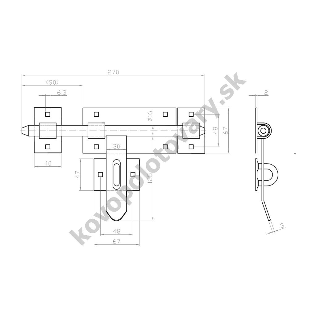Délka: 270; Materiál: ocel; Povrchová úprava: galvanické pozinkování; Průměr: 16; Výrobce: PSG;