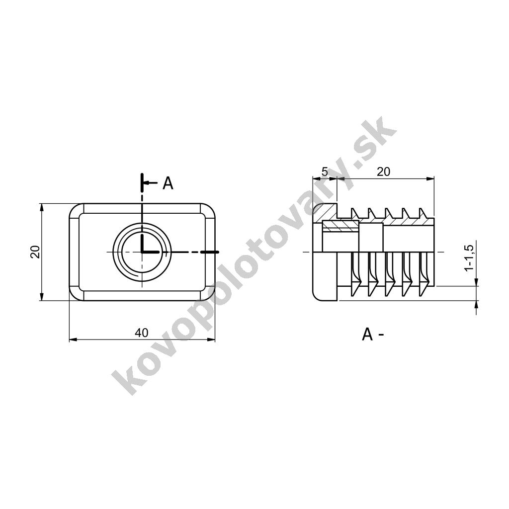 Materiál: ocel; Povrchová úprava: bez úpravy; Rozměr základny: 20 x 40;