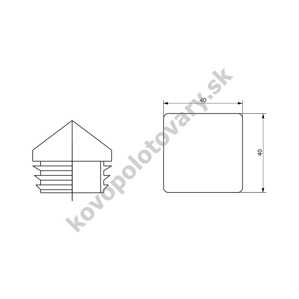 Barva: černá; Materiál: polyethylén LD; Povrchová úprava: erodování; Rozměr základny: 40 x 40; Typ závitu: bez závitu;