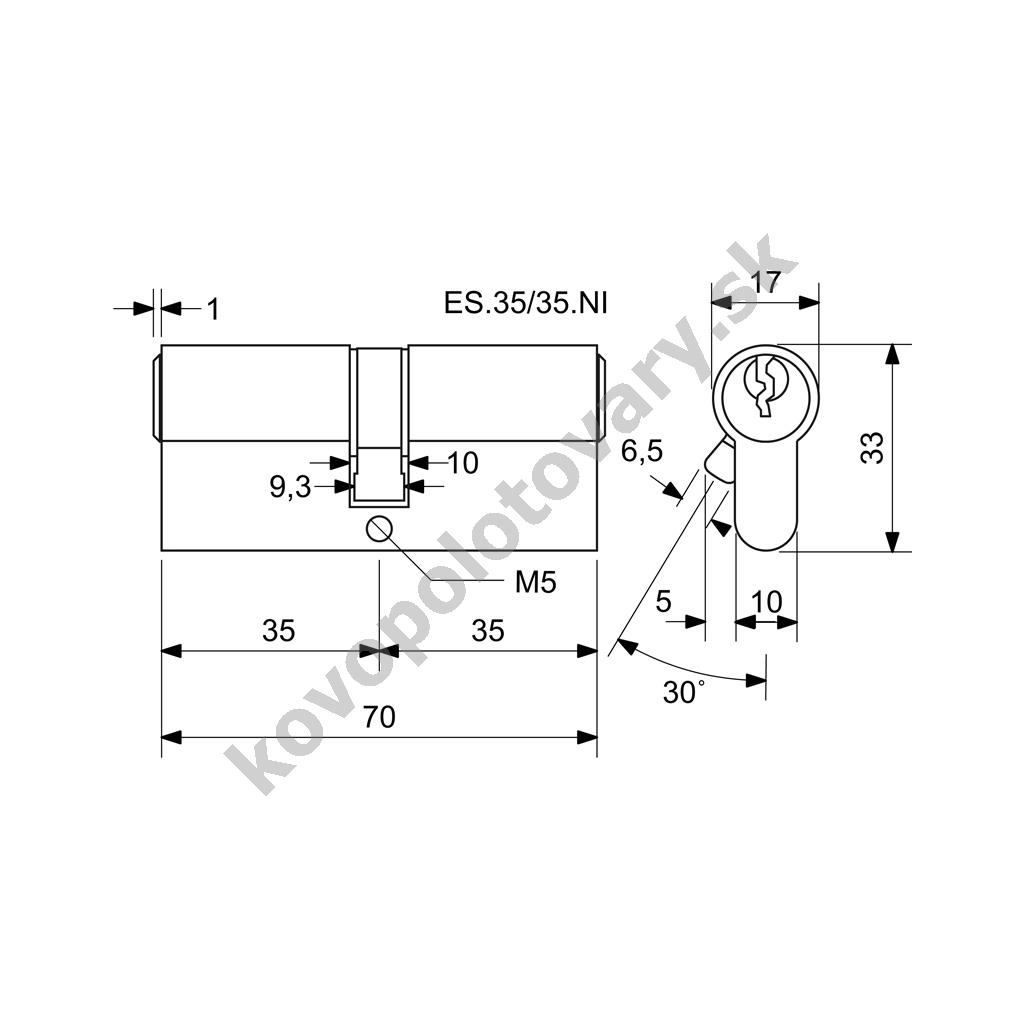 • 1x Richter Czech ES.35/35.NI - cylindrická vložka, 3. bezpečnostná trieda, 70 (35/35) mm