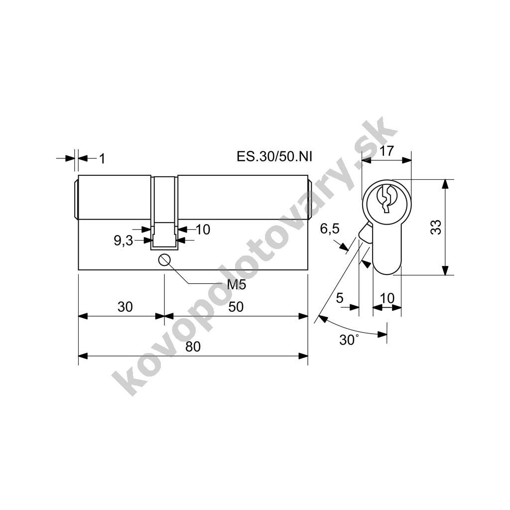 • 1x Richter Czech ES.30/50.NI - cylindrická vložka, 3. bezpečnostná trieda, 80 (30/50) mm