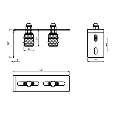 SFF-2M - horní vedení s kotvicí konzolí, měkkým kroužkem a regulací 2-kladkové, pro posuvné brány, dl. 260 mm