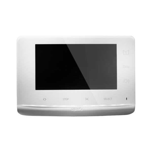 Domový videotelefón pre rozšírenie systému Somfy V300. Vo videotelefónu je integrovaný diaľkový ovládač RTS pre ovládanie až piatich zariadení.